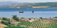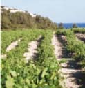Sur la bordure maritime du massif de la Clape, face au soleil levant, le vignoble du Château Mire l'Etang s'étale en terrasses sur un sol très aride.